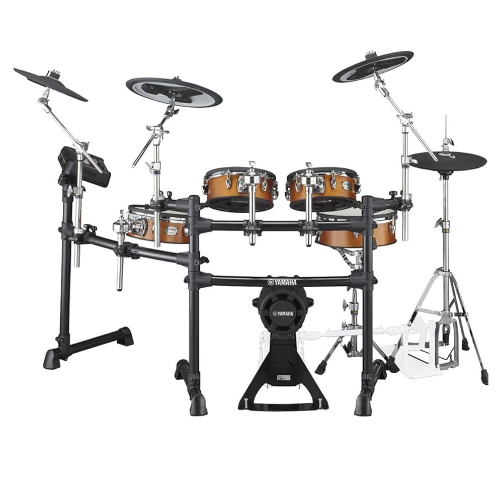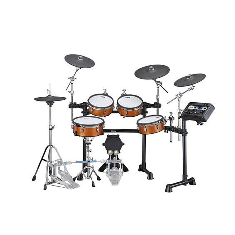 Pelli mesh a doppio strato, la tecnologia True Motion sull’Hi-Hat con un sensore ottico sul pedale, il terzo trigger esterno sul rullante per semplificare il rim-shot, i piatti crash e ride a tre zone, i tom sospesi per ridurre vibrazioni e possibili crosstalk, infine i supporti denominati Lambda dal design originale.