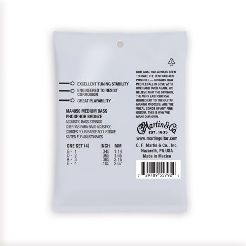 Martin & Co. MA4850 Authentic Bass, 4 Corde Basso Acustico, Medium 45/105 Phosphor Bronze