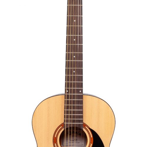 Il top in sapele massello assicura una risonanza ricca e un’ottima proiezione del suono, mentre il fondo e le fasce in sapele contribuiscono a creare un suono caldo e bilanciato, con una buona definizione nei medi e una piacevole presenza nei bassi. La combinazione di questi legni produce un timbro che è sia vibrante che espressivo, adatto tanto al fingerpicking quanto allo strumming.