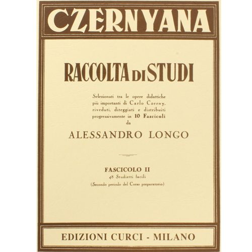 Editore:CurciSelezionati tra le opere didattiche piu’ importanti di CARLO CZERNY,riveduti,diteggiati e distribuiti progressivamente in 10 fascicoli da ALESSANDRO LONGO
