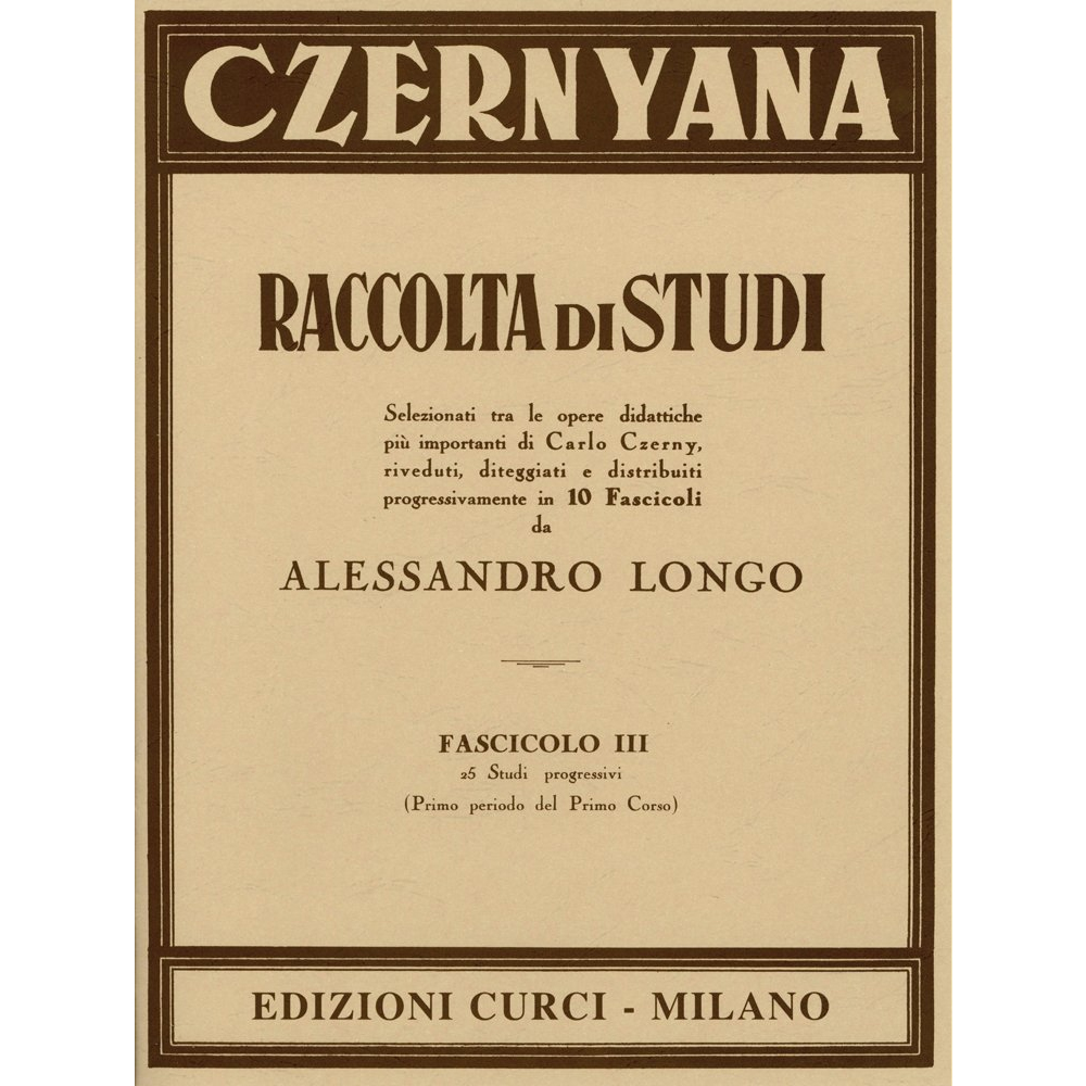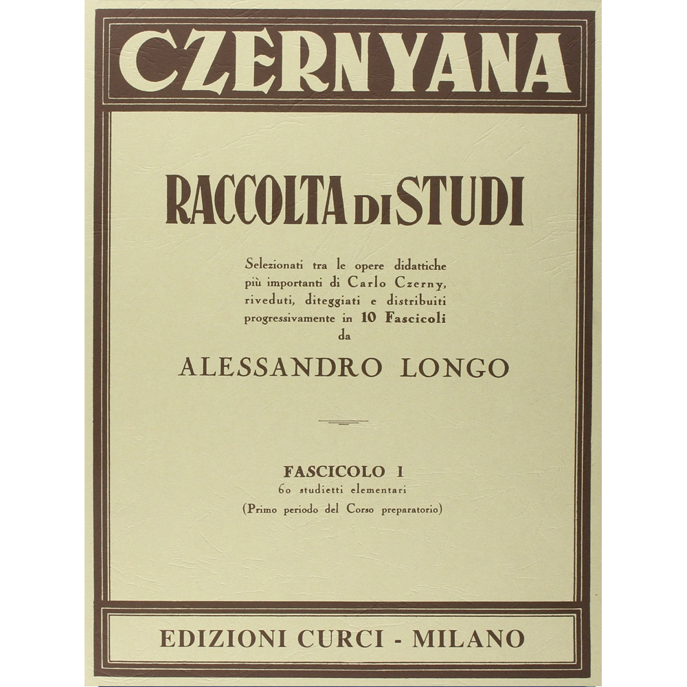Editore:CurciSelezionati tra le opere didattiche piu’ importanti di CARLO CZERNY,riveduti,diteggiati e distribuiti progressivamente in 10 fascicoli da ALESSANDRO LONGO